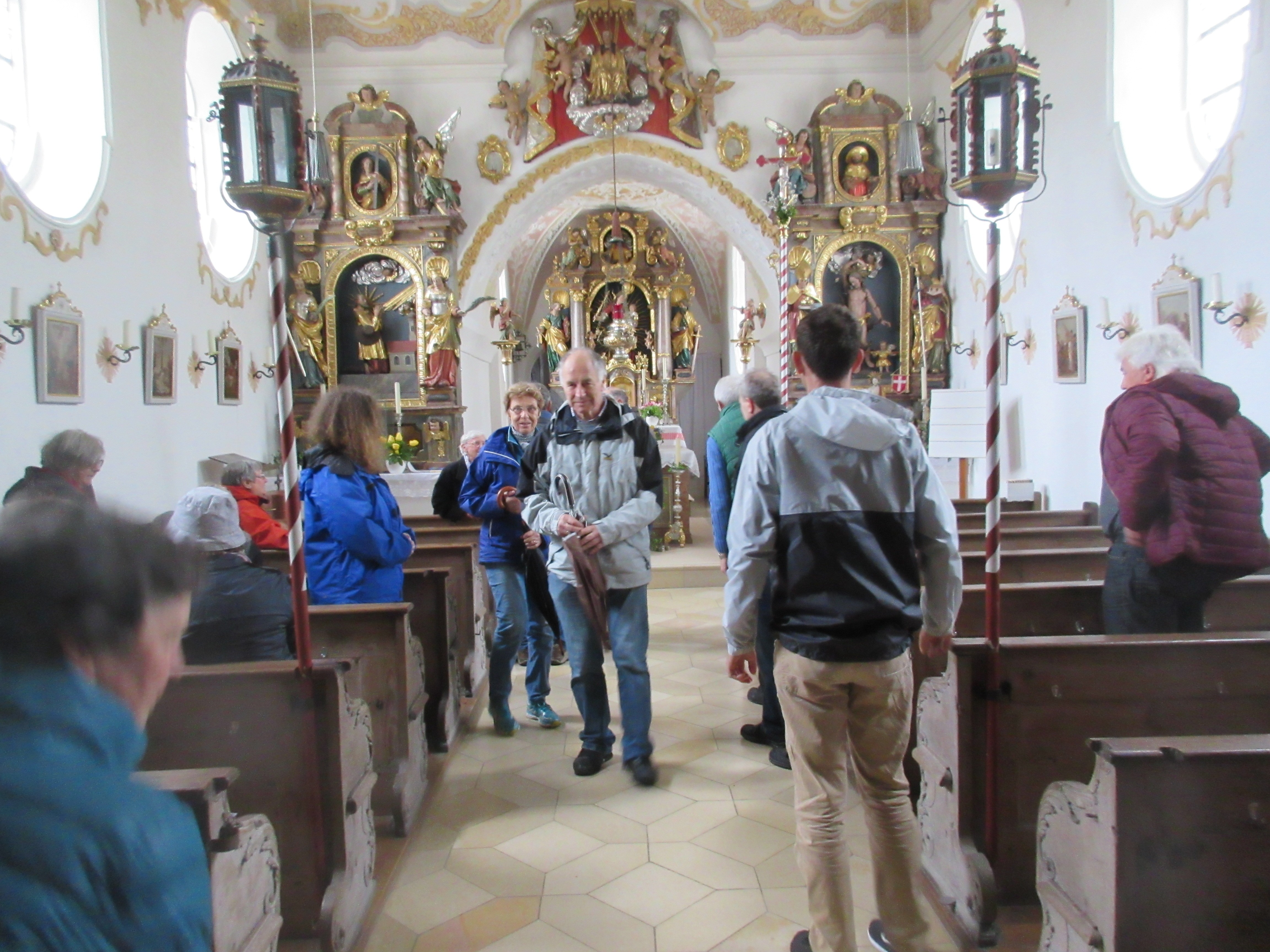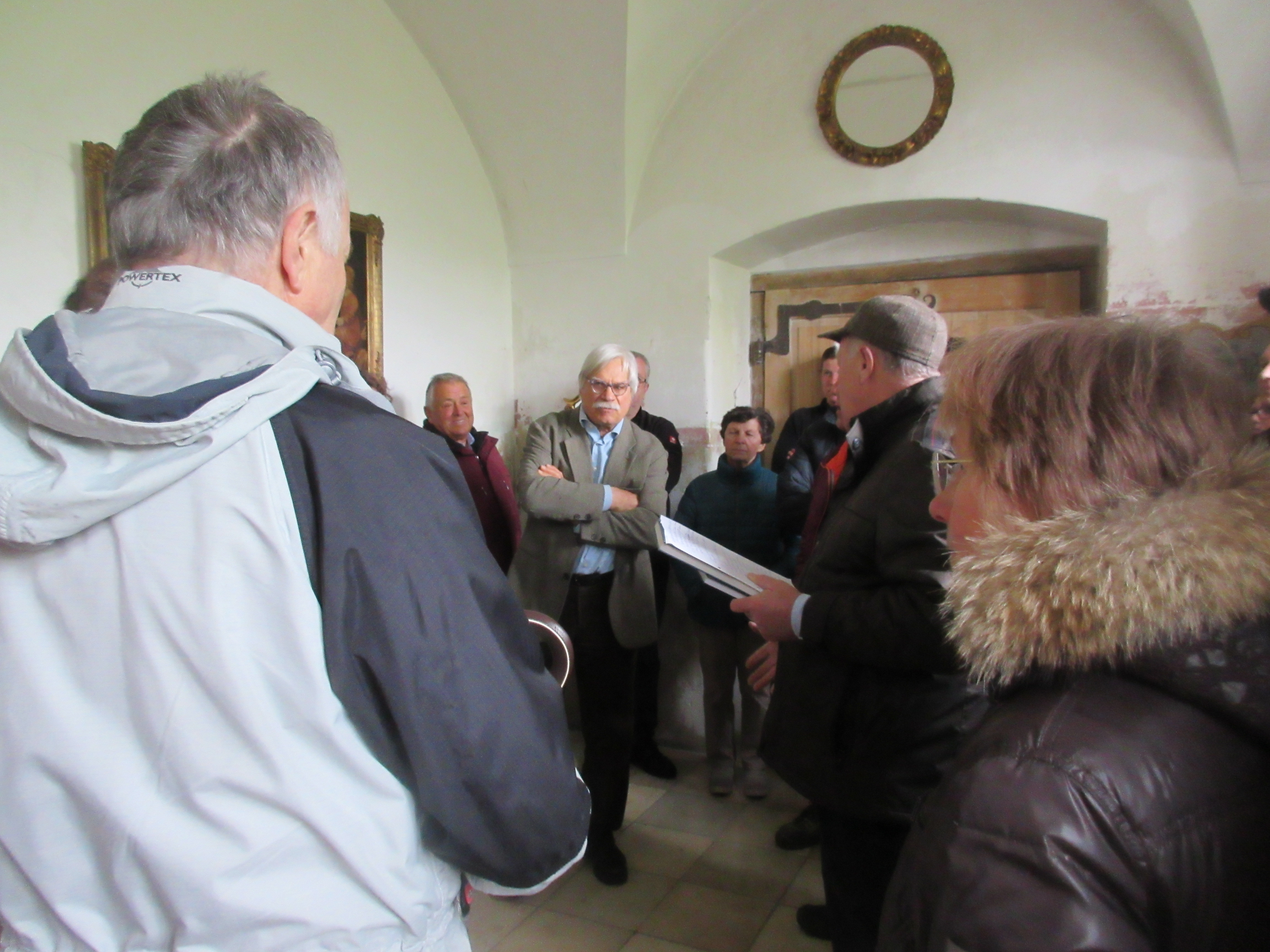 der Schloßkapelle in Schönbichl. Die Kapelle befindet sich in Privatbesitz und Heinz Jordan öffnete diese für die Besucher.Mit Alfons Berger erklärte er den Besuchern die Geschichte der Kapelle, die 1682 erbaut wurde.