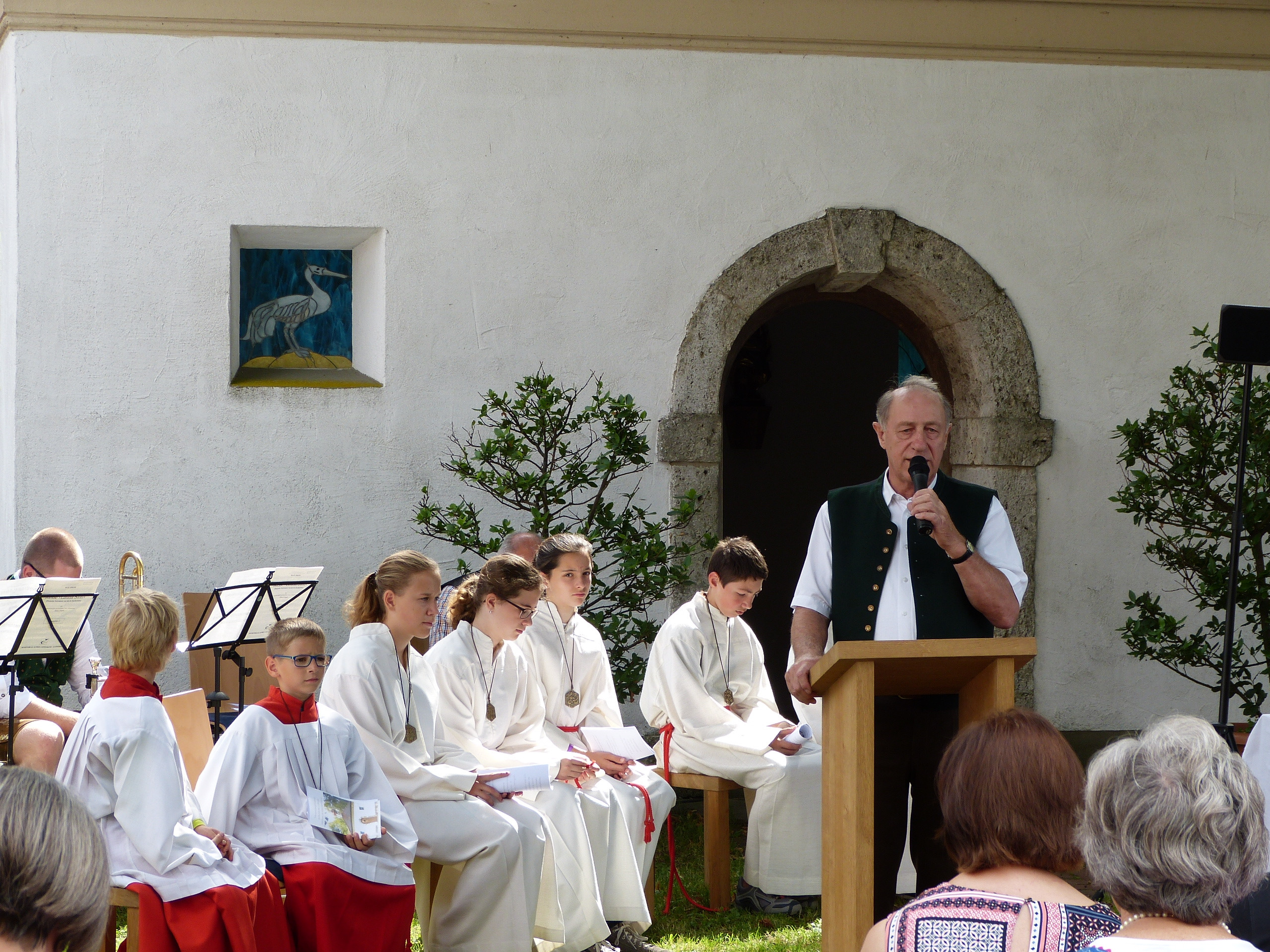 Der 1. Vorsitzende des Fördervereins Pantaleonsberg Kranzberg e.V. Alfons Berger hielt danach eine sehr emotionale Rede und erläuterte kurz die Geschichte des Pantaleonsberg. Er war sichtlich gerührt über die vielen Besucher. 1. Vereinsvorsitzender Alfons Berger